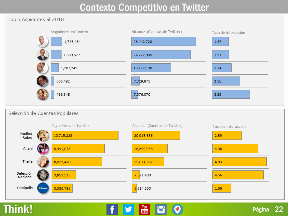 Este análisis de busca establecer un punto de inicio en las estrategias digitales y en medios sociales para la contienda del 2018, pues en Think! (a lot) Mercadotecnia, consideramos que la conversación en redes será crucial para elegir al próximo Presidente de México.